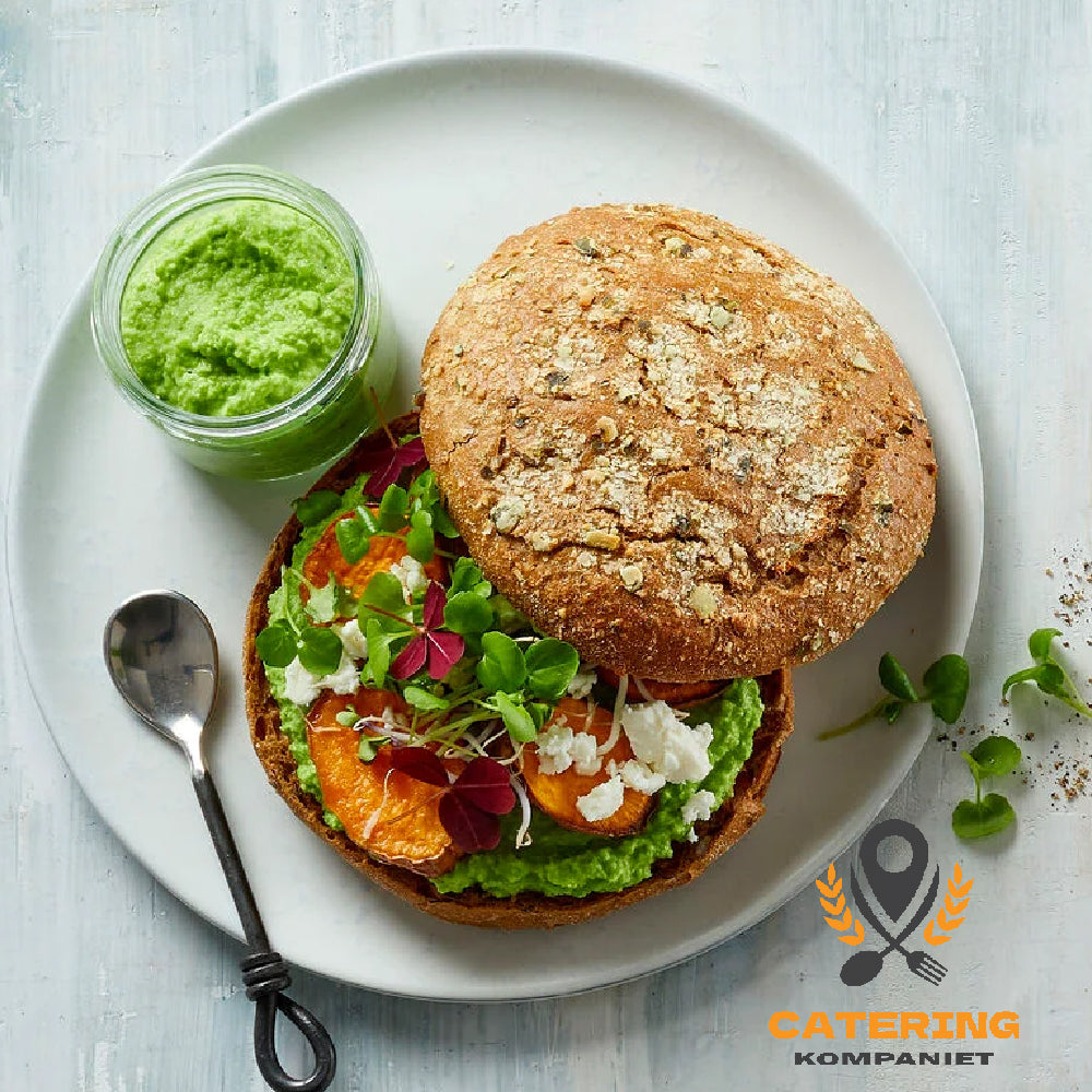 Stenugnsbakt, mjuk och mild smörgåsbulle med potatisflingor och svarta sesamfrön. Ett rustikt och lättätet bröd som framhäver alla smaker – välj dina favorittoppingar från vår frukostlista och skapa din perfekta start på dagen